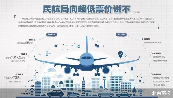 1月6日,2026年全国民航工作会议在京召开。会议披露,2025年民航总体实现盈利65亿元。北京商报记者了解到,航空货运、机场、航油航材等起到主力盈利作用。在客货运需求增长、国际航线扩展、精细化管理等多种因素作用下,民航经营效益进一步向好。2026年,民航定下了完成旅客运输量8.1亿人次的目标,并将深入整治“内卷式”竞争、防止航司以低于成本价开展恶性竞争列为重点工作之一。此外,会议还提出,2026年民航还将加快低空飞行服务站体系建设,并统筹推进重点型号以及C919、C909设计优化审定,有序推进机载设备、辅助动力装置等关键产品审定,以提升航空产业链国产化率。