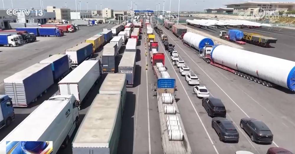 距离产业园3公里的霍尔果斯口岸,每天出关的车辆一眼望不到头。庞大的车流里不仅有满载跨境包裹的大货车,更是有一眼望不到头的国产新能源车和农用机械车辆,甚至还有长达数十米的风机叶片,这些琳琅满目的中国好货正在24小时不停歇地从这条“黄金大通道”驶出国门。