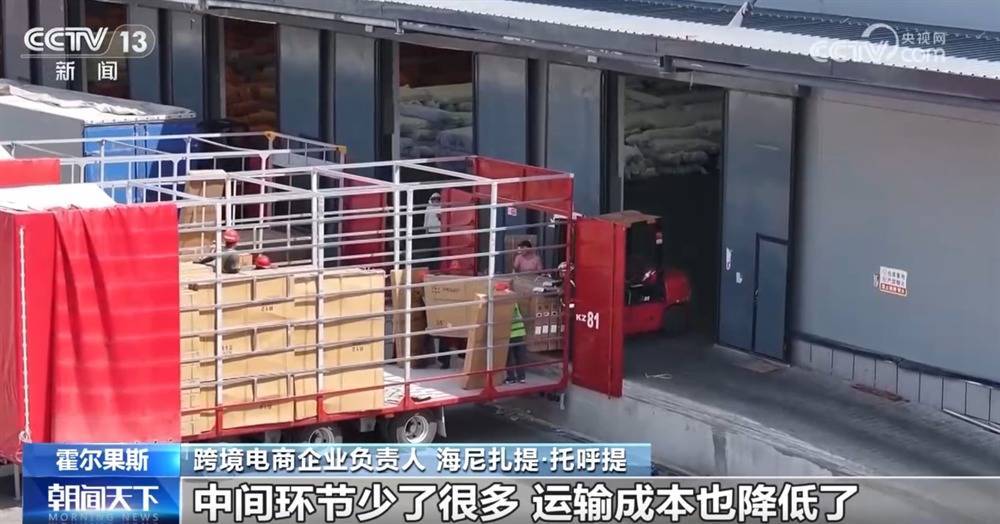 跨境电商企业负责人海尼扎提·托呼提称:“霍尔果斯不管是铁路还是公路,通往中亚、欧洲的线路都特别通畅,从这里发货,半天就能到阿拉木图。而且现在在霍尔果斯,货物能快速集散,中间环节少了,运输成本也降低了,产品在海外市场也更有竞争力。”